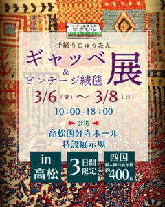 手織りじゅうたんギャッベ&ビンテージ絨毯展in高松 3/6(金)から開催です!