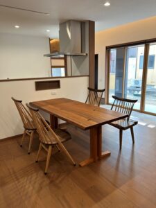 表情豊かな木目のウォールナット1200丸テーブル(香川県観音寺市M様)