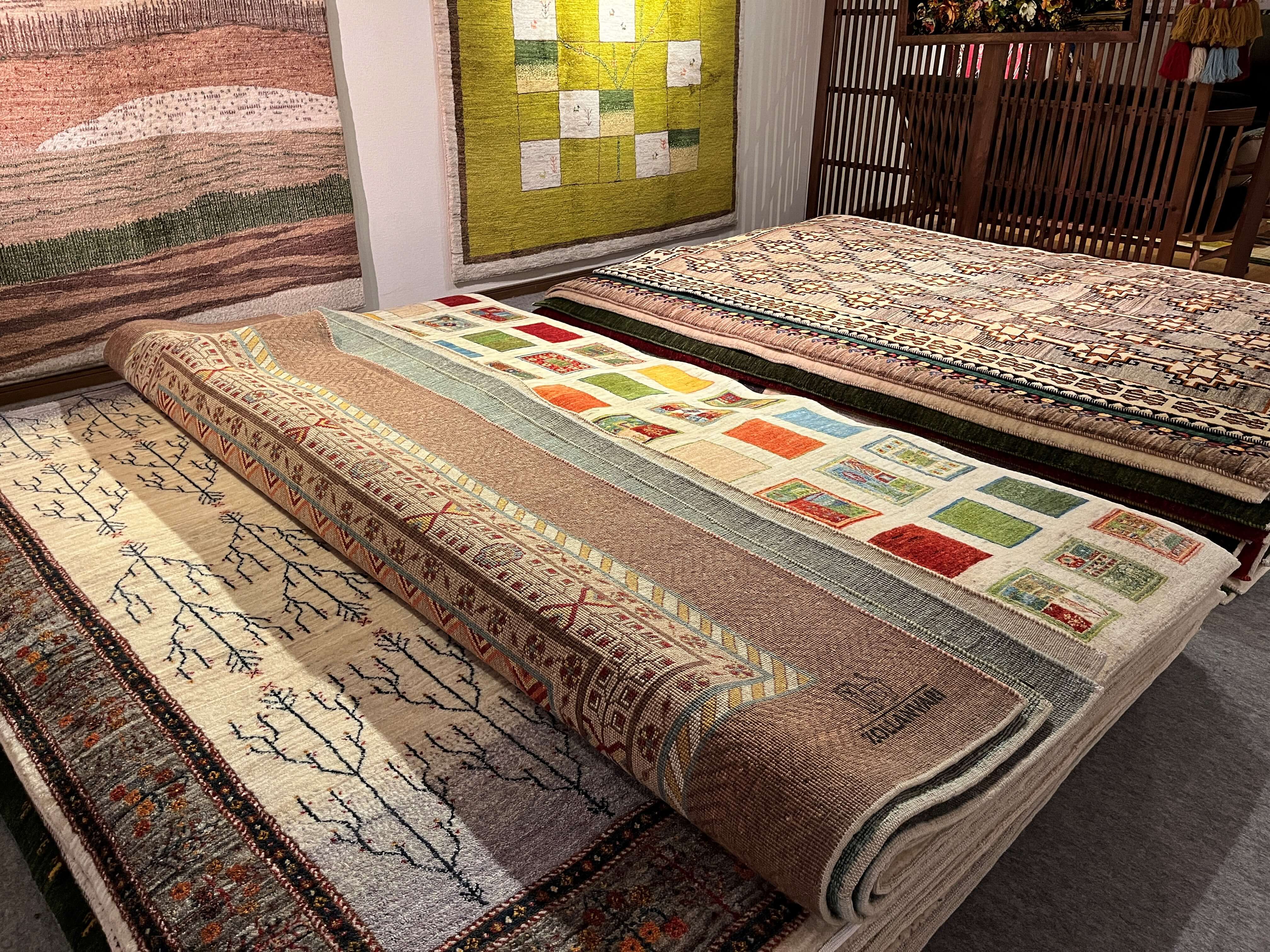 また、毎年海外へ直接買い付けに行く唯一無二なギャッベ、ペルシャ絨毯も豊富に在庫しております。