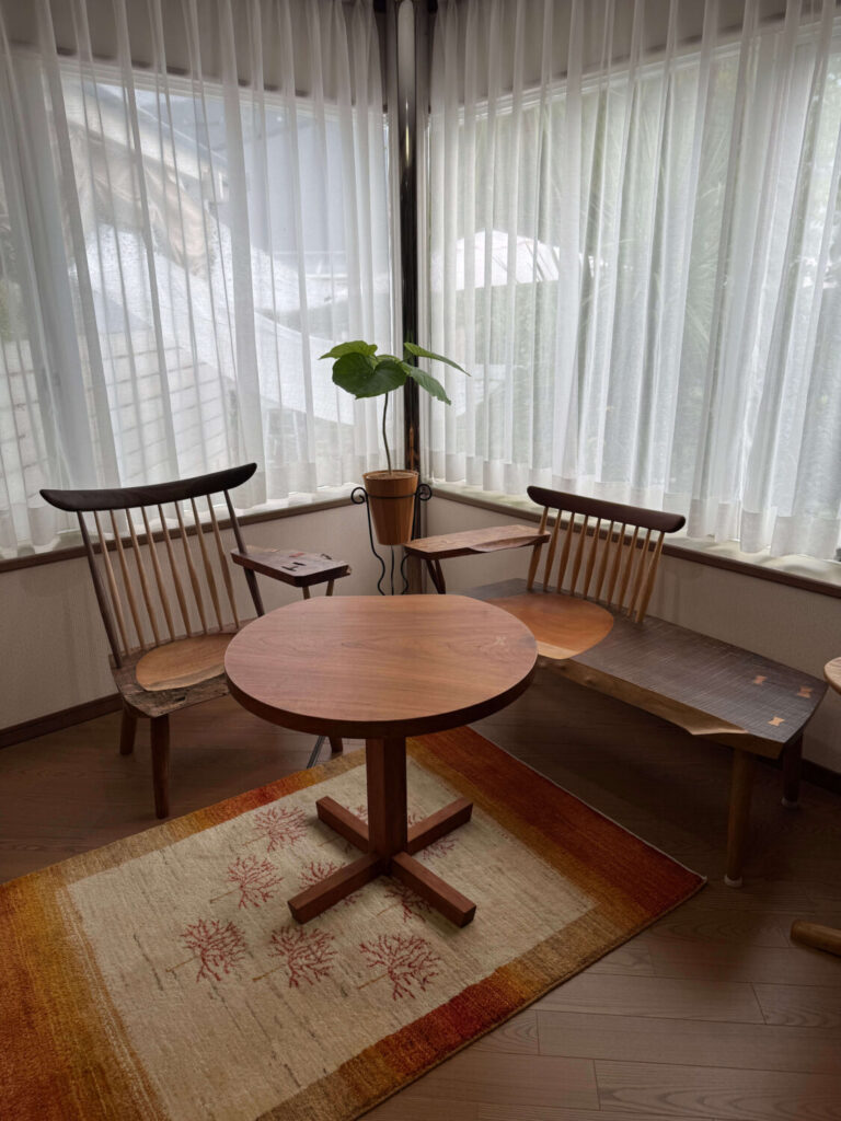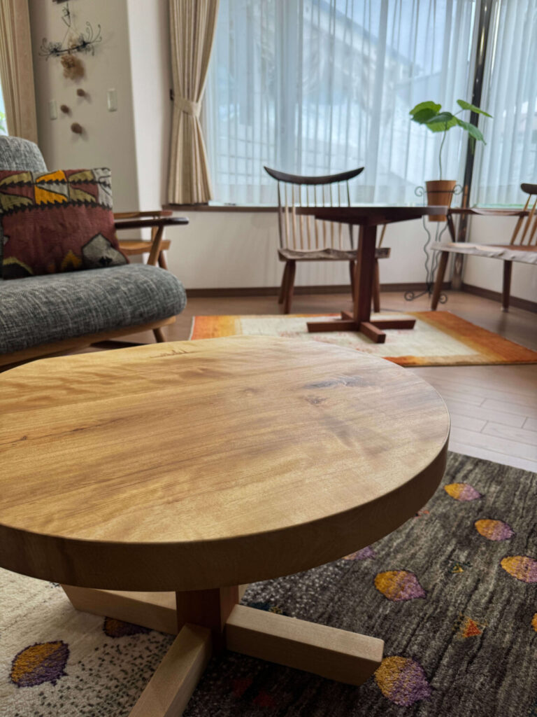 カバ桜材で製作したLowタイプはミニテーブルとして可愛い仕上りソファの前に、以前にお買い求めいただいたギャッベとの相性もとても素敵でした('ω')