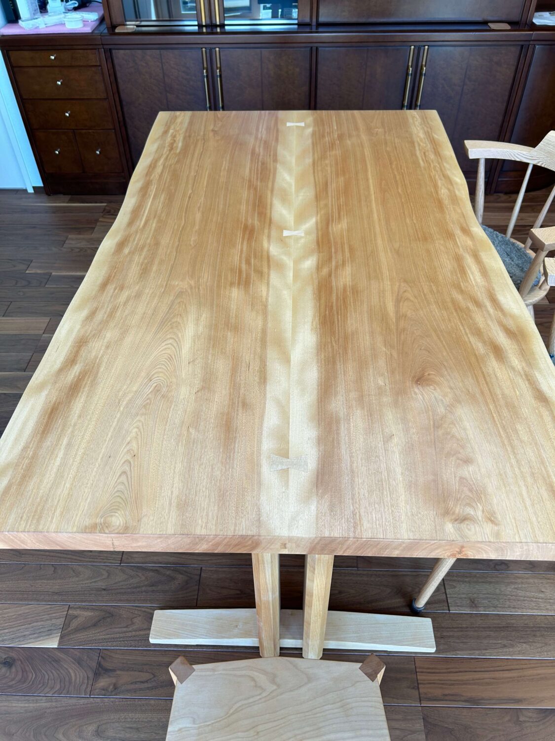 高松市からご来店くださいましたK様、当店自慢のカバ桜のブックマッチテーブルを直ぐに気に入って頂きました(*^^*)