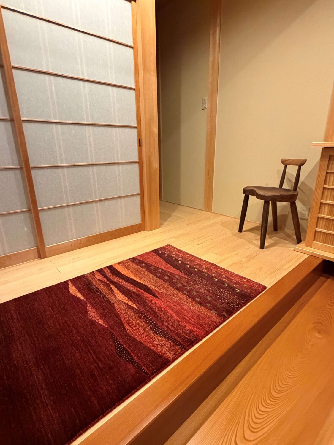 家具、ギャッベ共にすぎむらで揃えて下さっているT様邸のお玄関に敷いて頂けることに!(^^)!