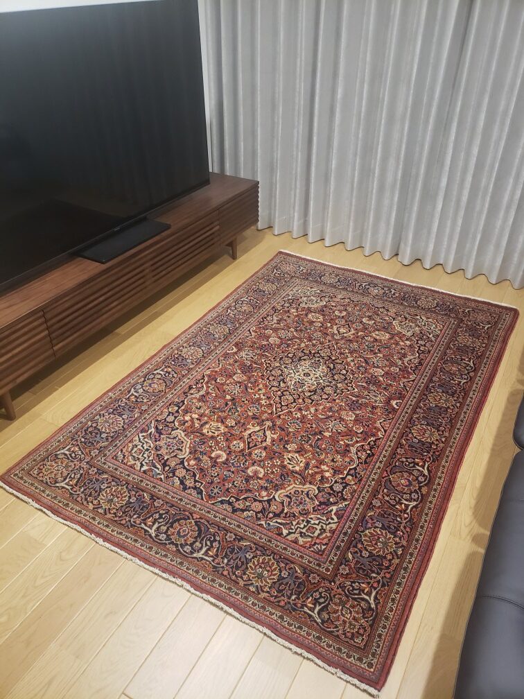リビングに敷いていただくと、華やかでありながらしっとりと上品な雰囲気にお部屋を変えてくれました。