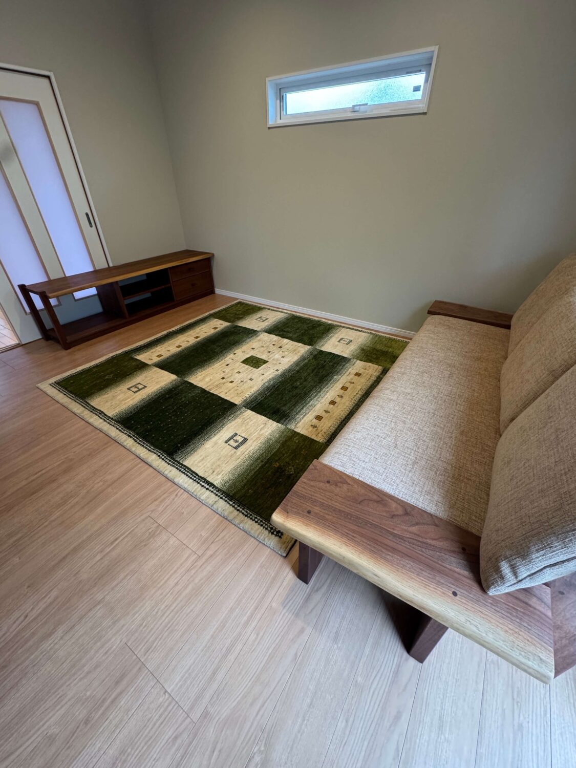 これからこのリビングで重ねられていく日々の中で、このギャッベがご家族のくつろぎの中心となってくれることを、私たちもとても嬉しく思います。