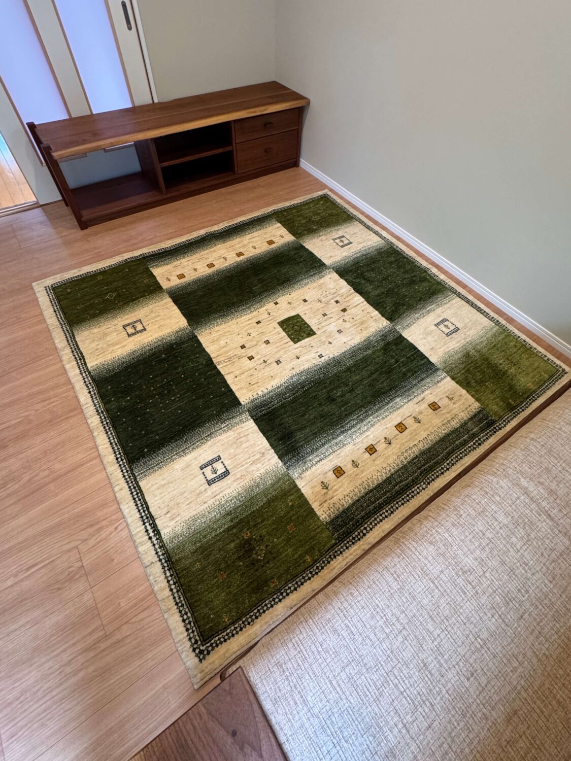 リフォームを終えられたばかりのリビングへ、2×2mサイズのギャッベをお届けしてきました。