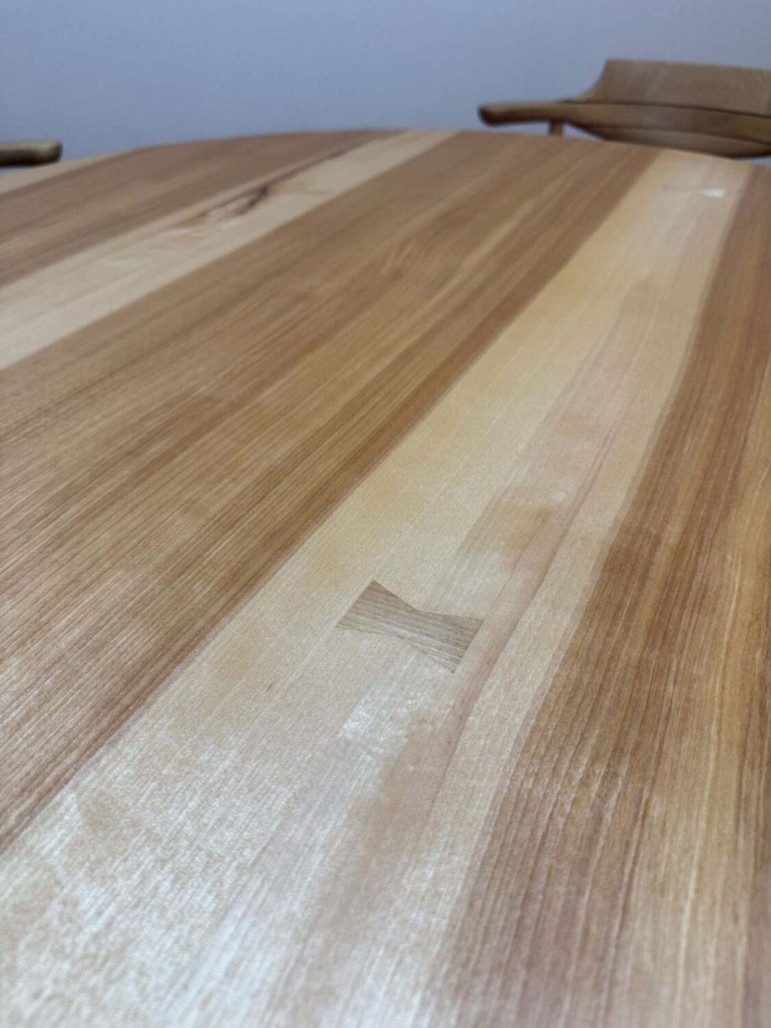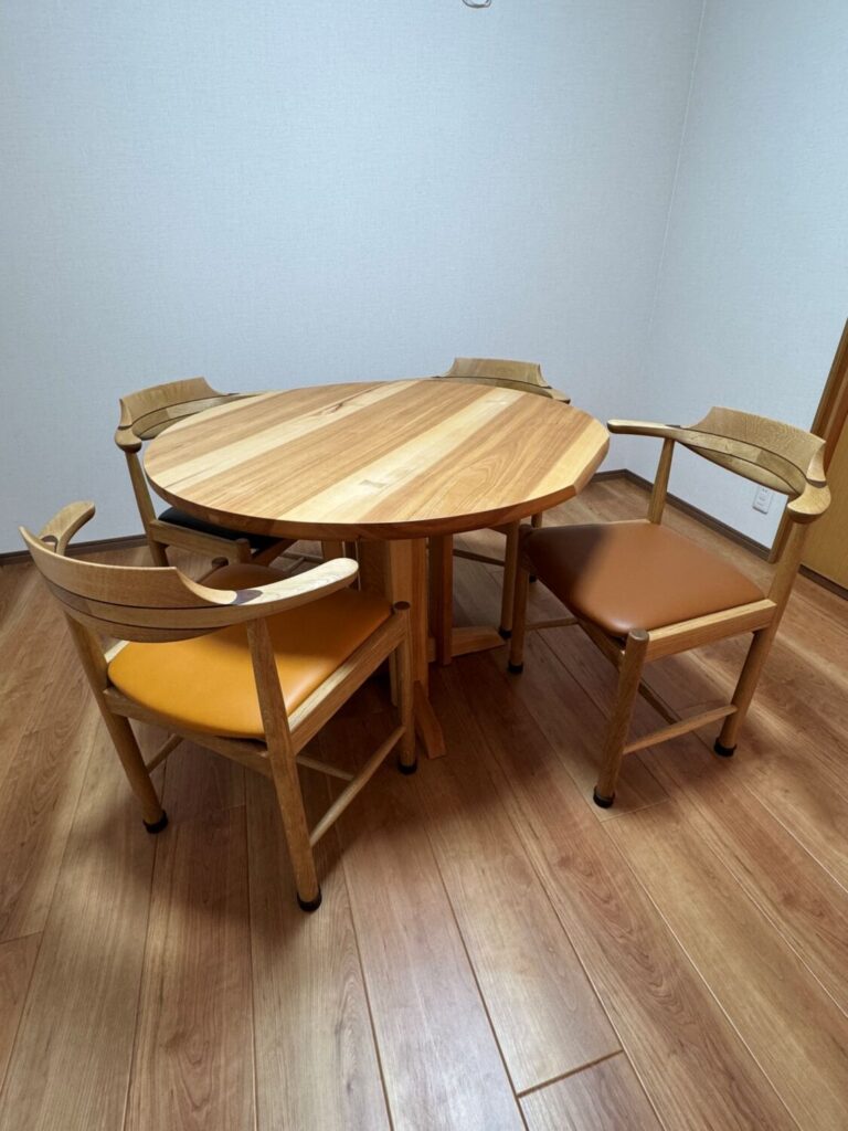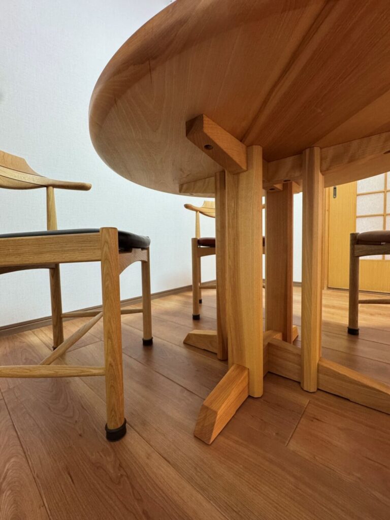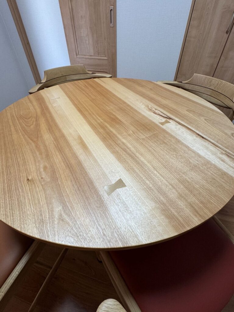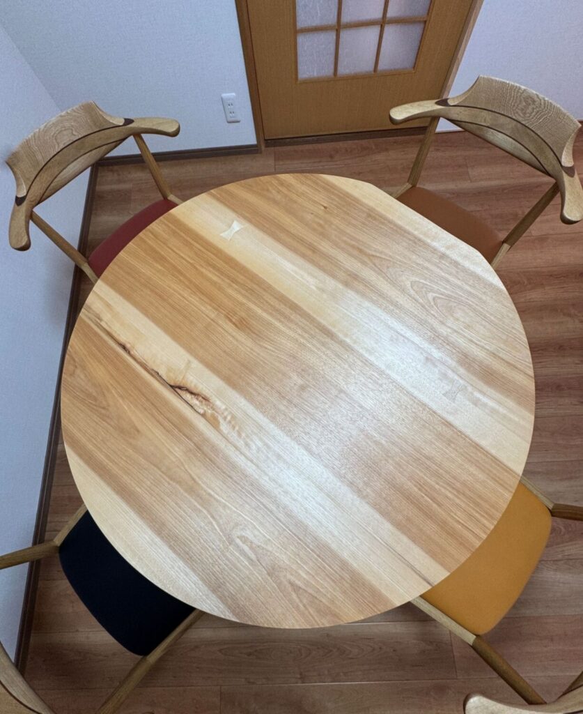 来客用のテーブルとして、カバ桜の明るい色合いをご希望くださり、1000mmの丸型テーブルを製作しました。