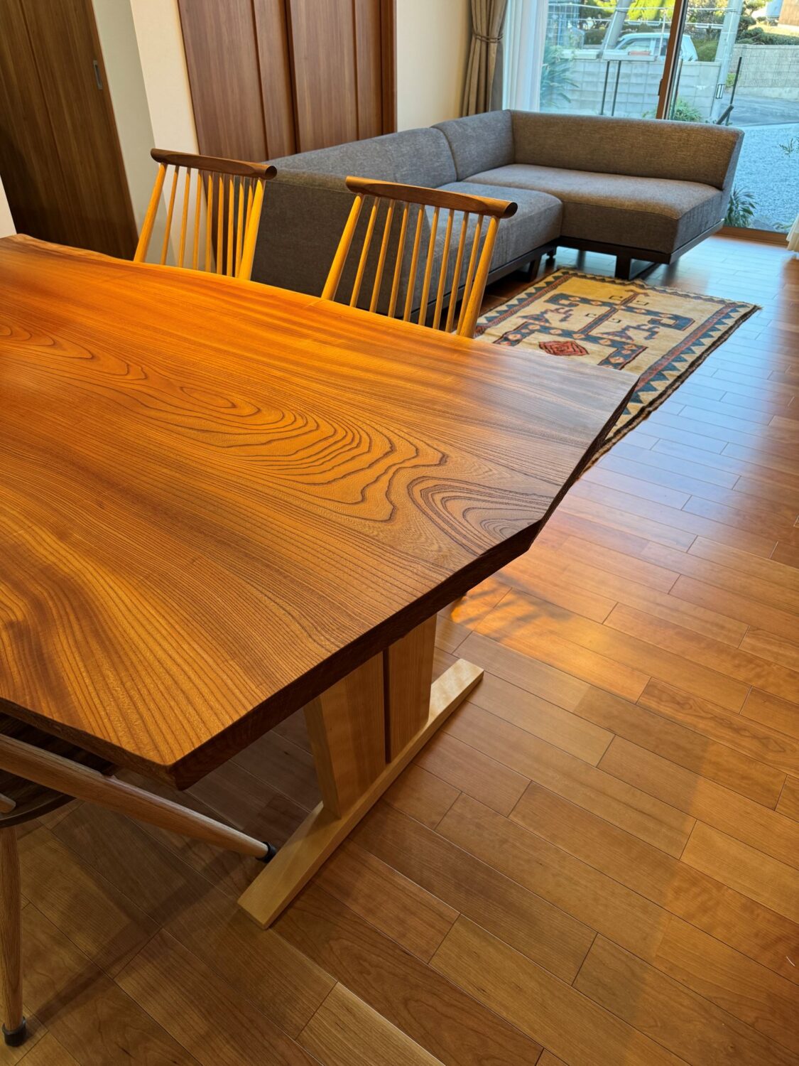 欅は使い込むほどに艶を増し、色合いも深まっていく材です。