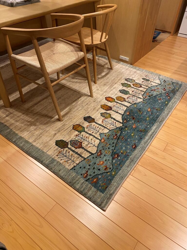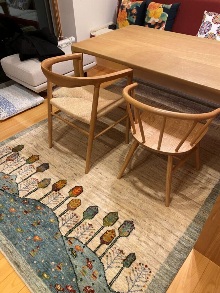 当店のギャッベをご覧いただき、ダイニングテーブルの下に敷く一枚としてお選びくださいました。