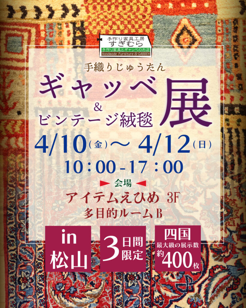 ◆手織りじゅうたんギャッベ&ビンテージ絨毯展in松山◆